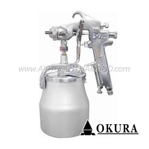 S-710S (ส้ม) กาพ่นสีใช้ลม กระป๋องล่าง (ส้ม) ขนาดปาก 1.5 มม. 750CC ความจุลม 185 ลิตร/นาที OKURA